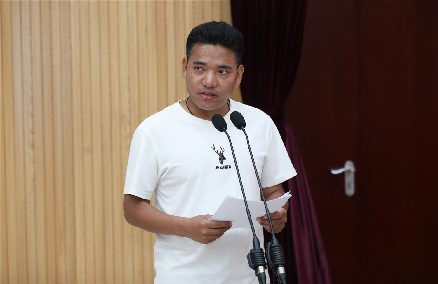 学员代表何荣、朗嘎扎西、林为攀在结业典礼上先后发言