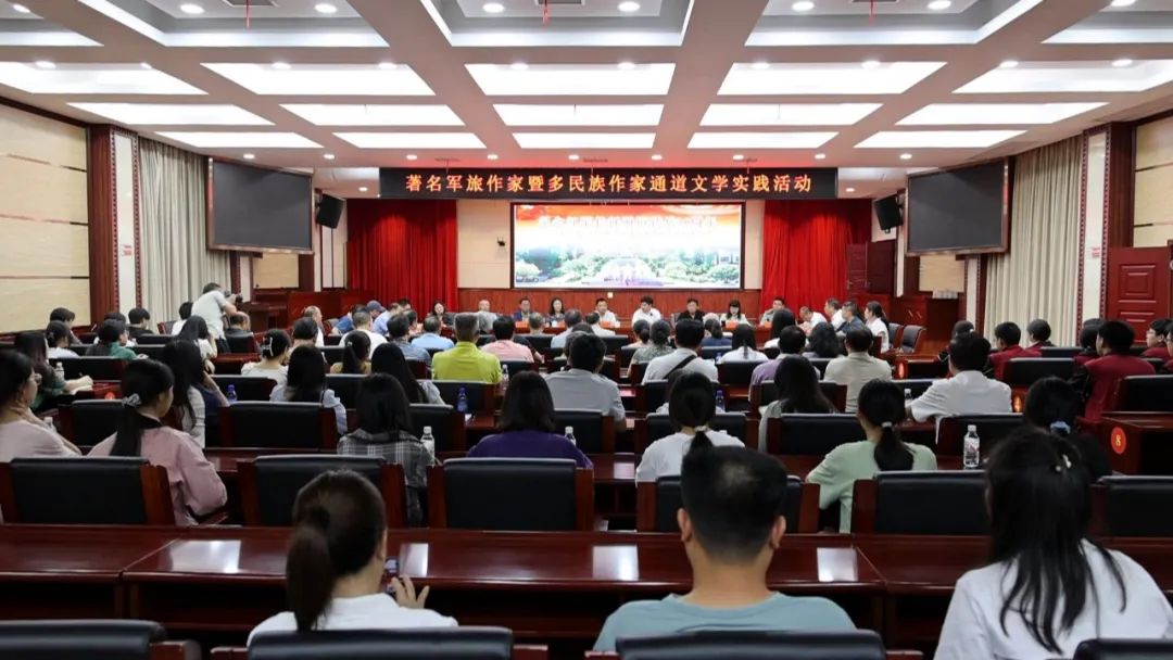 6月13日至17日,由《民族文学》杂志社与通道侗族自治县委、县人民政府、县人武部共同主办,通道县委宣传部、县文联承办的“纪念红军长征通道转兵90周年——著名军旅作家暨多民族作家走进通道文学实践活动”举办。中国作协创联部主任彭学明,《民族文学》主编陈亚军,《民族文学》副主编杨玉梅,军旅作家徐剑、王久辛、陶纯,以及胡金华、杨少波、江月卫、杨汉立等多民族作家深入通道转兵纪念馆、通道小水突围战遗址、皇都侗文化村、梨子界战斗遗址等地进行实地调研走访,通道县委副书记、县人民政府县长田刚等陪同调研。采风团于6月15日在通道县城召开座谈会,通道县委书记覃歇民,县委常委、县人武部政委江岳松等出席,县委常委、县委宣传部部长李世萍主持会议。