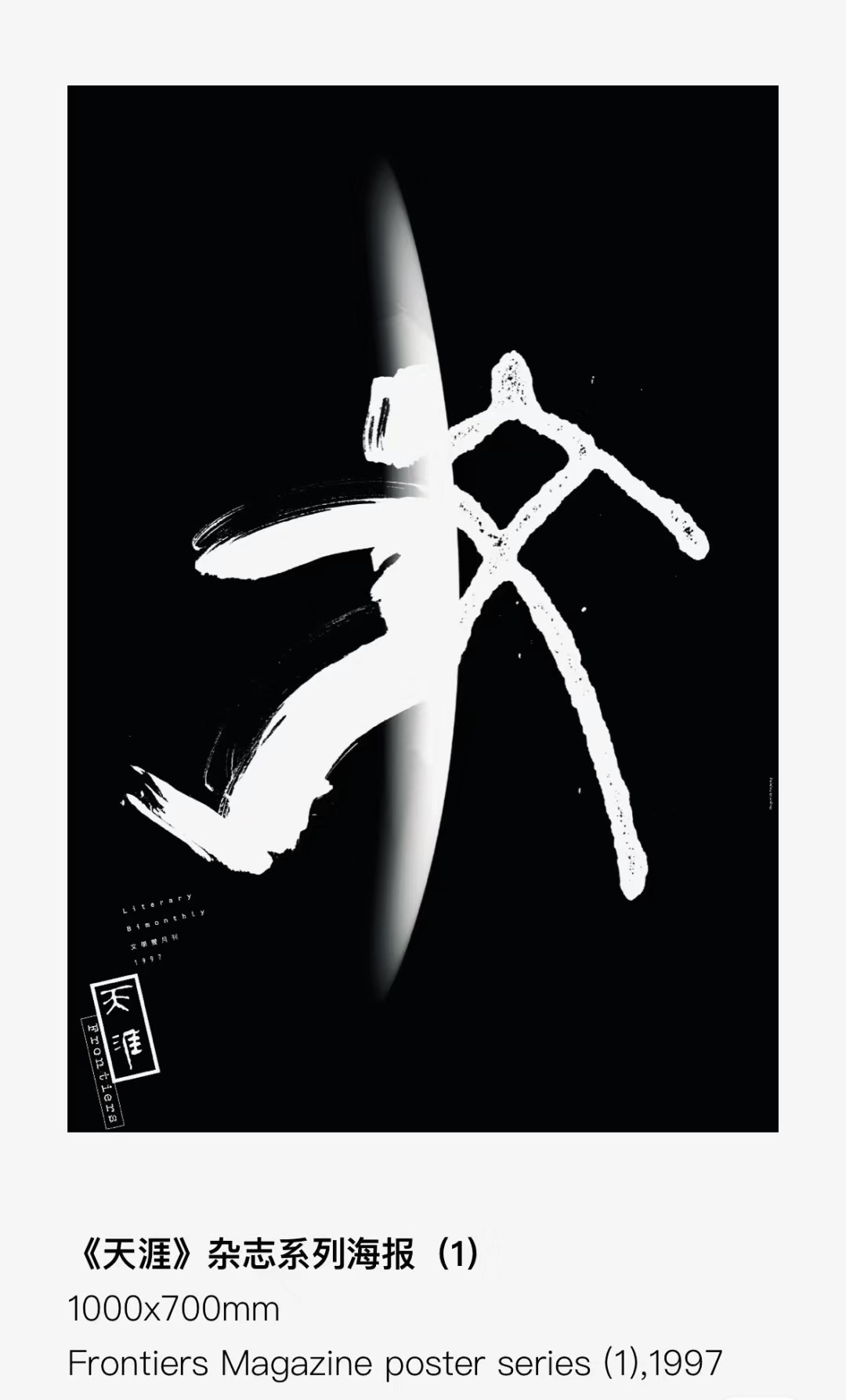 回看1997年,韩家英为《天涯》杂志设计的系列海报,毛笔写就象形的“人”字与篆书“文”字相依,右手五指蘸墨与印刷体的“美”字结合……“人”“文”“美”这几个字很好地体现了《天涯》的精神气质。2024年,《天涯》重新向韩家英发出封面设计的邀请,时隔15年,他重新回到纸媒,不无感慨地说,这次回归让自己与之前有截然不同的感受。2024年的《天涯》封面,韩家英用汉字的“负形”做出独特的图形,每一期的设计元素,都来自唐代诗人王维的一句诗——如何以深具现代性的汉字变体,激活传统文化里的诗意,是这一系列封面的新尝试。