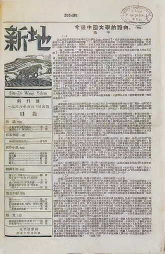 《新地》为清华文学会社刊,创刊于1936年6月10日。虽然其仅出3期即告终刊,但清晰地展露了社员试图沟通世界文学、“展开一种新的文学运动”的积极努力。