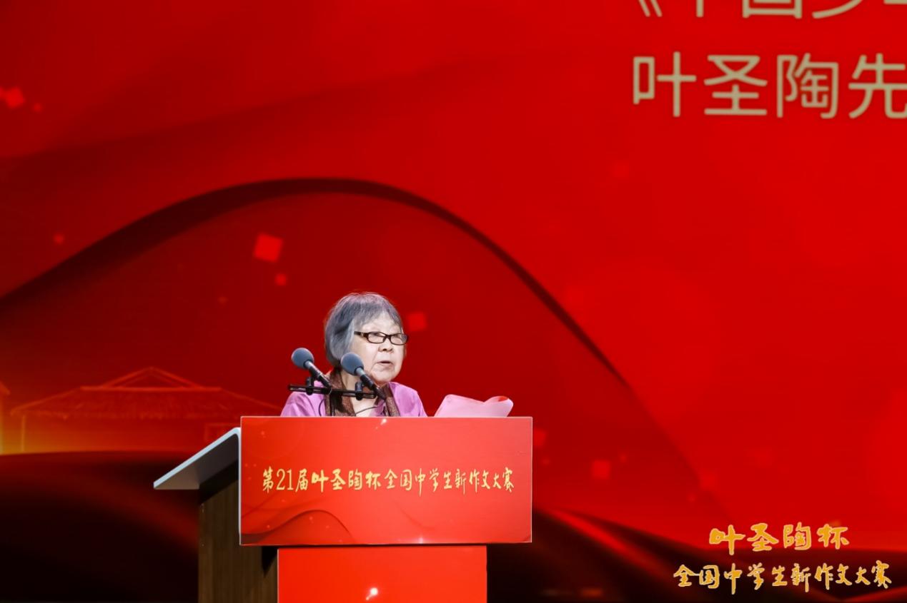 大赛顾问、叶圣陶孙女叶小沫在典礼上深情致辞,表达对大赛的祝贺和感念。她说,今年10月28日是叶圣陶先生诞辰130周年,许多尊敬和热爱他的人,都准备在这个日子里纪念他。以他名字冠名的作文大赛,就是对他的最好纪念。每一位参赛的同学,都应该记住他老人家说的话:“文是要做的,更重要的是做人。”他说“习作的目的不在学习写文章,预备做文人”,而是因为“无论什么人都生活在人群中,随时有把意思感情发表出来的需要。发表可以用口,可以用笔,比较起来用笔的效果更大。因此,人人都要学习用笔发表,人人都要习作”,鼓励同学们学习叶圣陶先生做人和作文的准则,永远把他作为榜样。