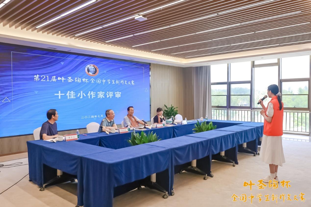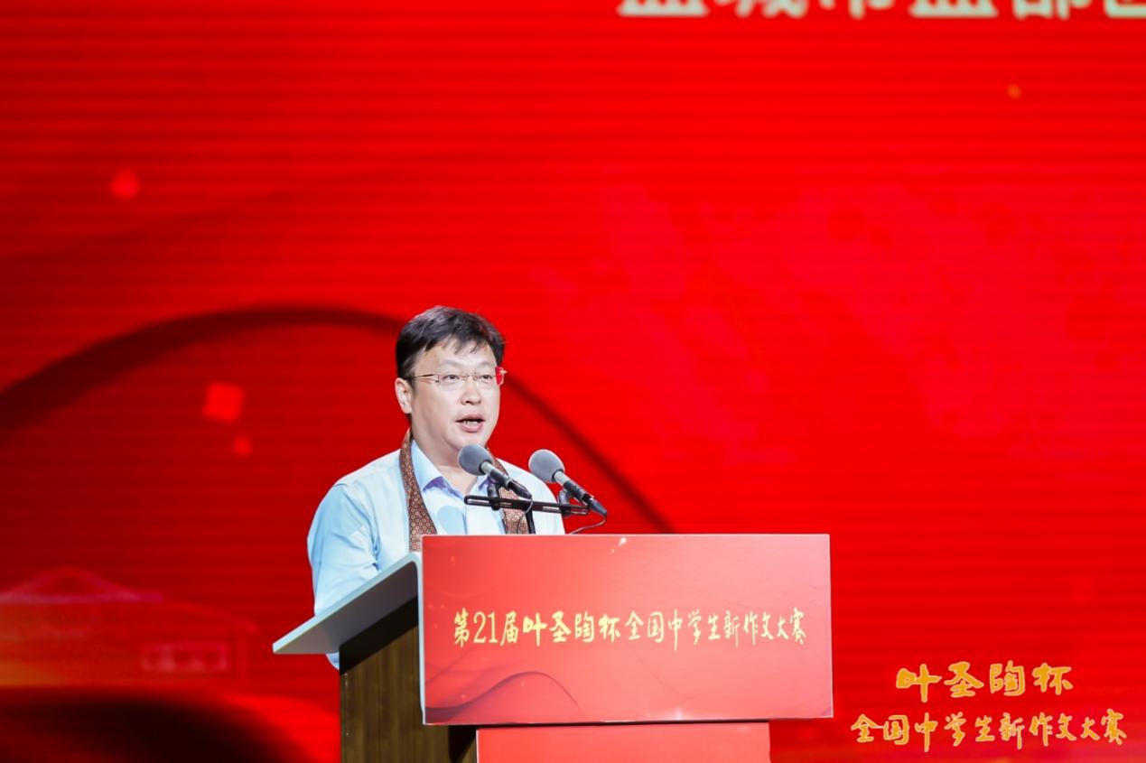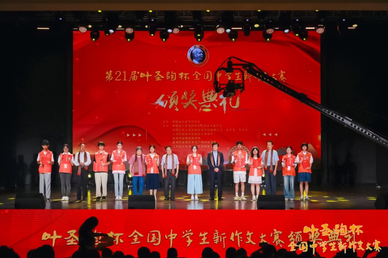 7月28日,第21届叶圣陶杯全国中学生新作文大赛颁奖典礼在江苏省盐城市草房子景区举行。白烨、吴思敬、曹文轩、顾之川、陈福民、贺绍俊、邵燕君、叶小沫、叶永和、王世龙、李飞、马兵、孙道功、蒋成峰、尤立增、桑哲等文学界、教育界、新闻出版界的专家,中共盐城市盐都区委员会、盐都区人民政府、盐都区教育局、盐都区文化广电和旅游局、江苏大纵湖文旅集团等支持单位相关领导,以及获奖师生代表近四百人参加了颁奖活动。