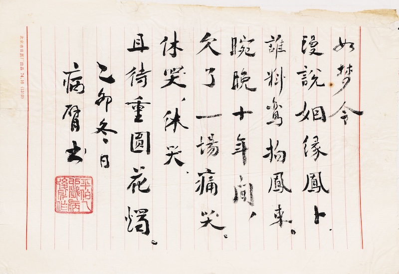 72岁的俞平伯想起了60年前的往事,对着夫人许宝驯,在一张信纸上用毛笔工整地写下两首《新春感事》: