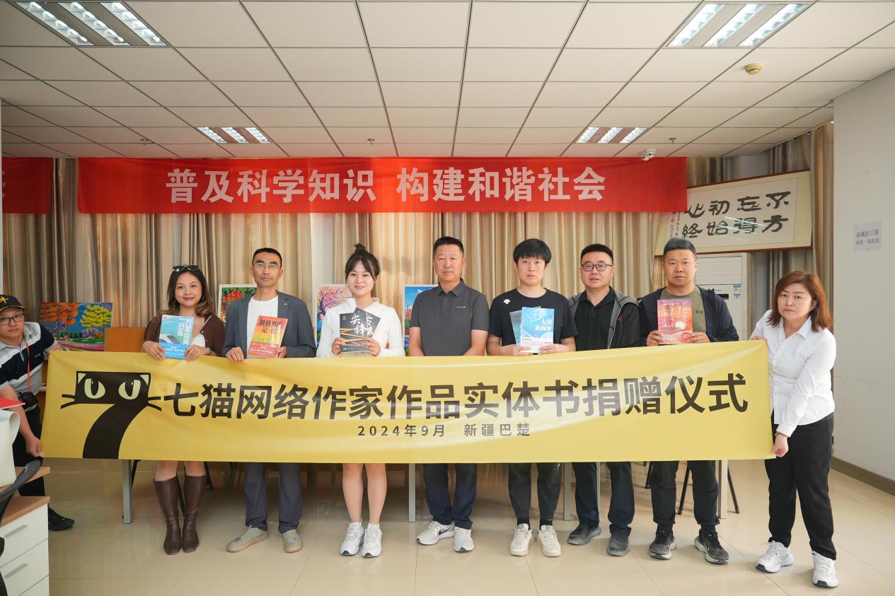 9月12日,七猫网络作家一行抵达喀什地区的“东大门”,古“丝绸之路”的重要驿站——巴楚,向巴楚县图书馆捐赠图书120余册,包括现实题材作品《腾格里的记忆》《大国盾构梦》《智能觉醒》《万里山河一日还》《苍穹之盾》《尖锋》等。《腾格里的记忆》作者白马出凉州、《大国盾构梦》《智能觉醒》作者银月光华、《苍穹之盾》作者伴虎小书童、《尖锋》作者顾天玺参加活动捐赠图书。“很高兴我的作品能出现在巴楚图书馆,《尖锋》是一本公安题材小说,展现了党员辅警在维护社会治安、打击犯罪过程中的英勇事迹和复杂心理。能够为新疆的读者们带来一些精神营养,为文化援疆作出贡献,我感到十分有意义。”顾天玺说到。