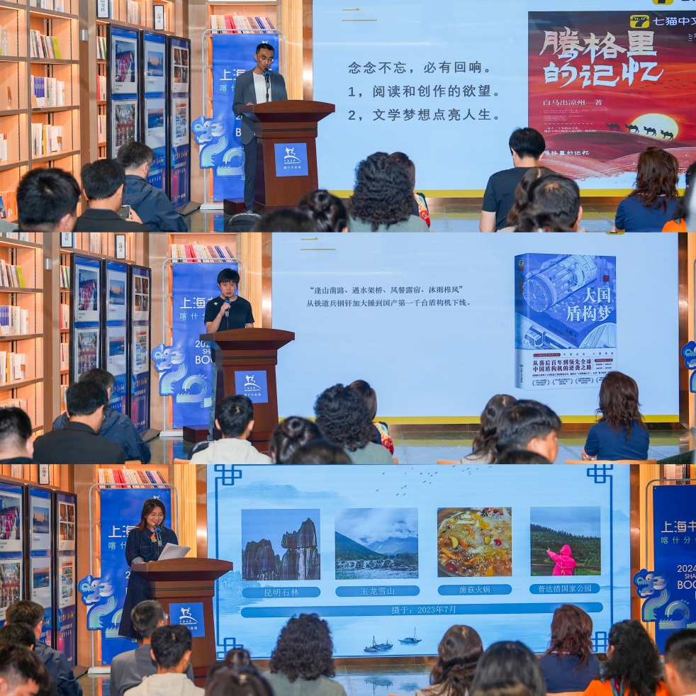 开幕式上,上海出版界分别向喀什教育局、喀什第六中学、喀什理工职业技术学院、上海市对口援建四县教育局捐赠图书,其中也包括七猫捐赠的《剑来》《大国盾构梦》《苍穹之盾》《腾格里的记忆》《穿越微茫》《锦衣春秋》等14部书,共计200余册。