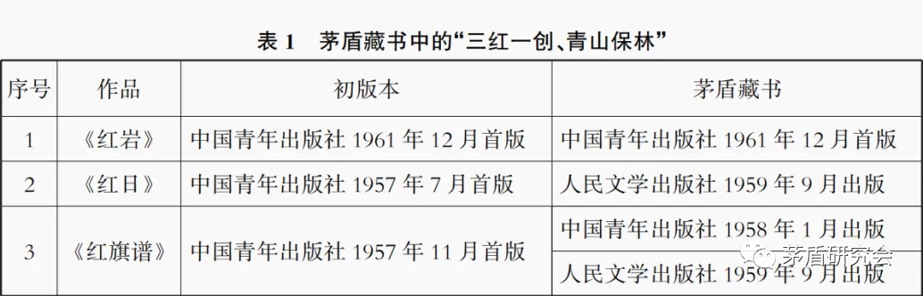 从藏书情况可以看出,茅盾对于作品的收藏情况,既有单本收藏,如《红岩》《红日》,也有副本的收藏,如《山乡巨变》《青春之歌》,既有初版本,如《红岩》《保卫延安》,也有非初版本的收藏,如《红旗谱》《山乡巨变》《青春之歌》。