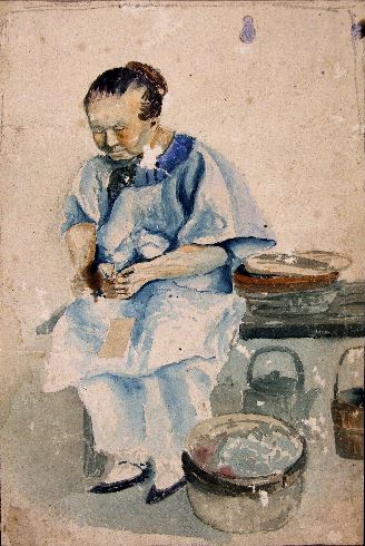 《祖姨母》颜文樑 16.2×11cm 纸本水彩 1912年 苏州市公共文化中心藏