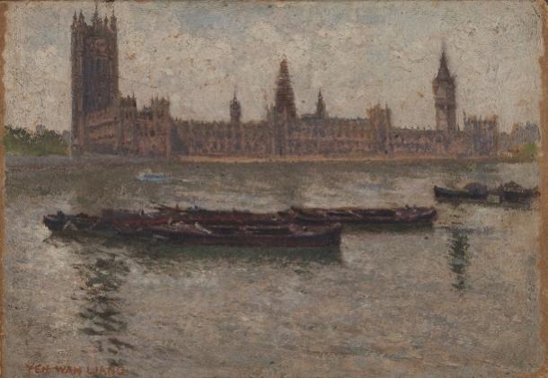 《英国议院》 颜文樑 17×25cm 纸板油画 1929年 中国美术馆藏