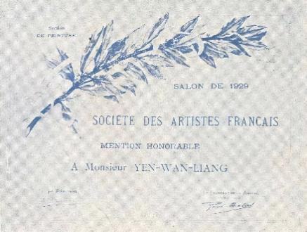1929年,法国春季沙龙授予颜文樑荣誉奖证书