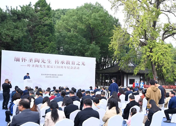 叶圣陶先生嫡孙叶永和致贺词,向获奖老师们表示热烈的祝贺,向主办、承办单位表示感谢,尤其对甪直接纳这个活动成为颁奖地,使得一届又一届的获奖老师,可以踏上这块寻根之地,来缅怀和学习叶圣陶先生的作文和做人。他说,举办叶圣陶教师文学奖,这既是对热爱文学的教师队伍的检阅,也是对众多热爱文学的教师的召唤。他深情回忆了叶圣陶爷爷不凡的人生历程,叶圣陶的教育生涯是从甪直开始的,写作生涯也是从甪直开始的。他表示,今天我们纪念叶圣陶先生诞辰130周年,因为他的教育思想,他的文学创作,他的道德风范,得到了大家的赞扬,人们赋予了他教育家和文学家的荣誉。他坚信,这个以叶圣陶名字命名的教师文学奖,一定会激励千千万万的教师,像他那样做教师,像他那样写文章。