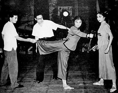 《红色娘子军》的编导之一李承祥(左二)、王希贤(左一)为第一代“琼花”的饰演者白淑湘(右二)以及赵汝蘅(右一)排练。图片由中央芭蕾舞团供图