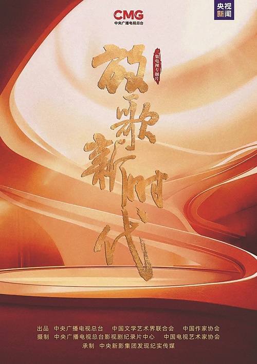 在文艺工作座谈会召开10周年之际,由中央广播电视总台、中国文学艺术界联合会、中国作家协会联合出品,中央广播电视总台影视剧纪录片中心、中国电视艺术家协会联合摄制的三集电视专题片《放歌新时代》于10月30日至31日晚在中央广播电视总台央视综合频道播出。