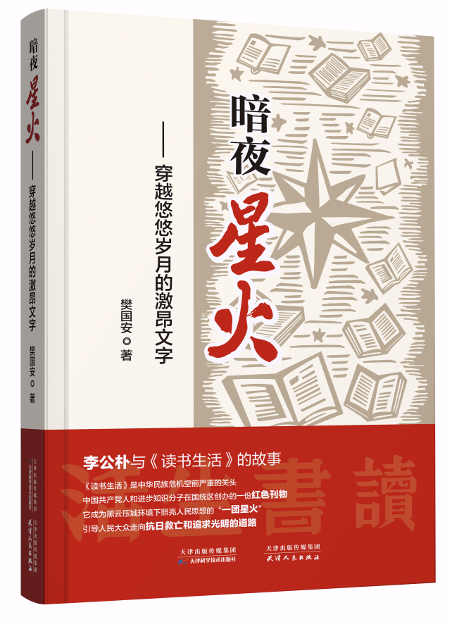《读书生活》创办于1934年11月10日,脱胎于《申报》流通图书馆及其读者指导部。创办者李公朴是著名的爱国民主人士,他在上海团结了一批“大革命”失败后云集至此的革命党人以及从海外留学归来的革命知识分子。其中,夏征农是从南昌“大革命”前线转移到上海的共产党员,柳湜是从长沙前线经由江苏转移到上海的共产党员,艾思奇是从日本东京留学归来的马克思主义者,其余重要成员如高士其等也秉持抗日主张,倾向社会主义。这决定了这份新刊物的红色基调。《暗夜星火——穿越悠悠岁月的激昂文字》中,作者首先向读者传递出《读书生活》同人的爱国情怀与抗日精神,通过介绍他们马克思主义中国化、大众化的生动实践,引导我们感受在帝国主义侵略加剧、国民党统治严密残酷的上海,这些进步知识分子的胆识与智慧。