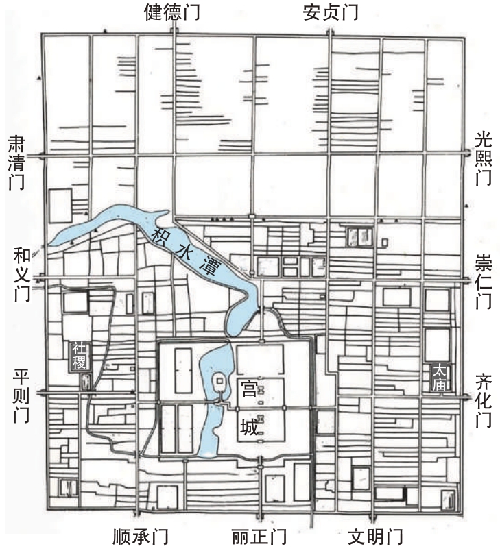 明清时期,北京城的建设和改造对古制也有所发展。比如左祖右社,本应该是在宫廷的正左和正右,但明代却将其分别改在了左前方和右前方,使得宫廷和祖、社连成为一体。在这些变化中,集市位置的变化应该属于最大的。随着商品经济的发展,城市中集市的位置也按照城市居民的需求自然分布开来。