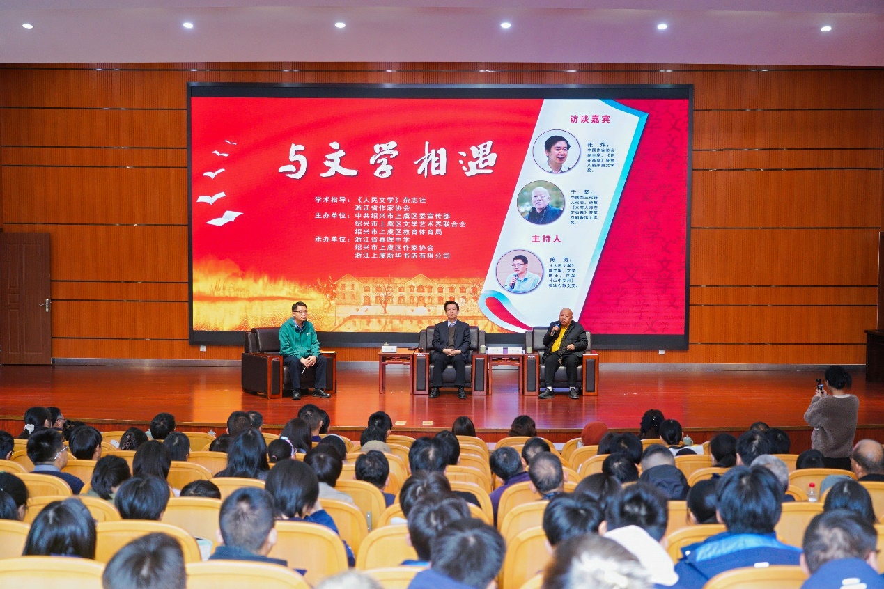 活动期间还举办了以“与文学相遇”为主题的名家访谈讲座,张炜、于坚与当地的文学爱好者、写作者以及春晖中学学生近三百人,围绕写作、阅读、生活等问题进行了亲切交流。