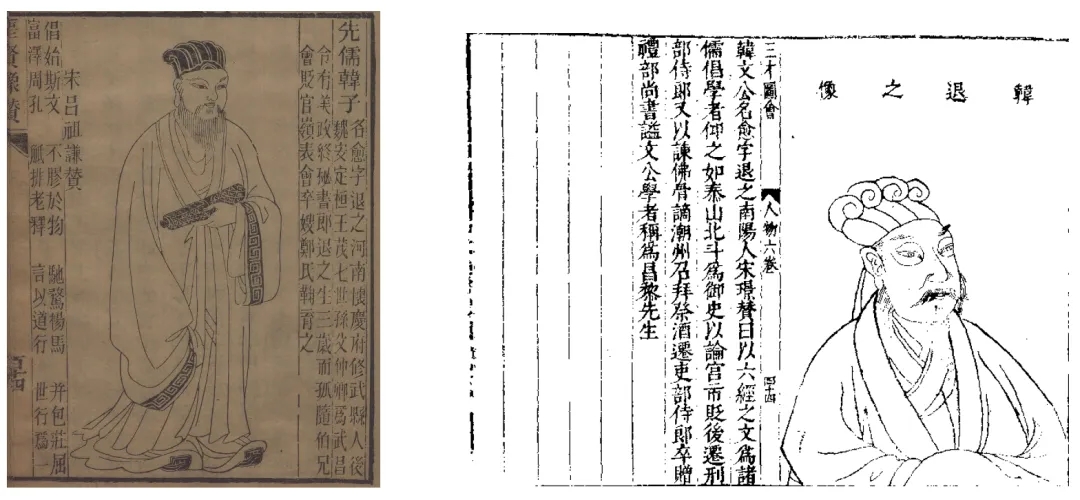 左图为图三:韩愈(取自明代吕维祺《圣贤像赞》);右图为图四:韩愈(取自明代王圻《三才图会》)