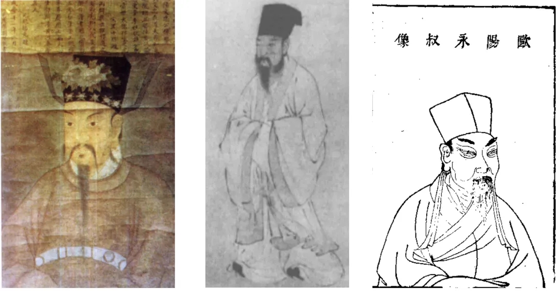 左起依次为图六:欧阳修(取自黄进德《欧阳修评传》)、图七:欧阳修(明代唐寅绘)、图八:欧阳修(取自明代王圻《三才图会》)