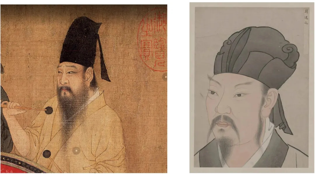 左图为图一:韩熙载(取自《韩熙载夜宴图》局部);右图为图二:韩愈(取自故宫南薰殿旧藏《圣贤画册》)