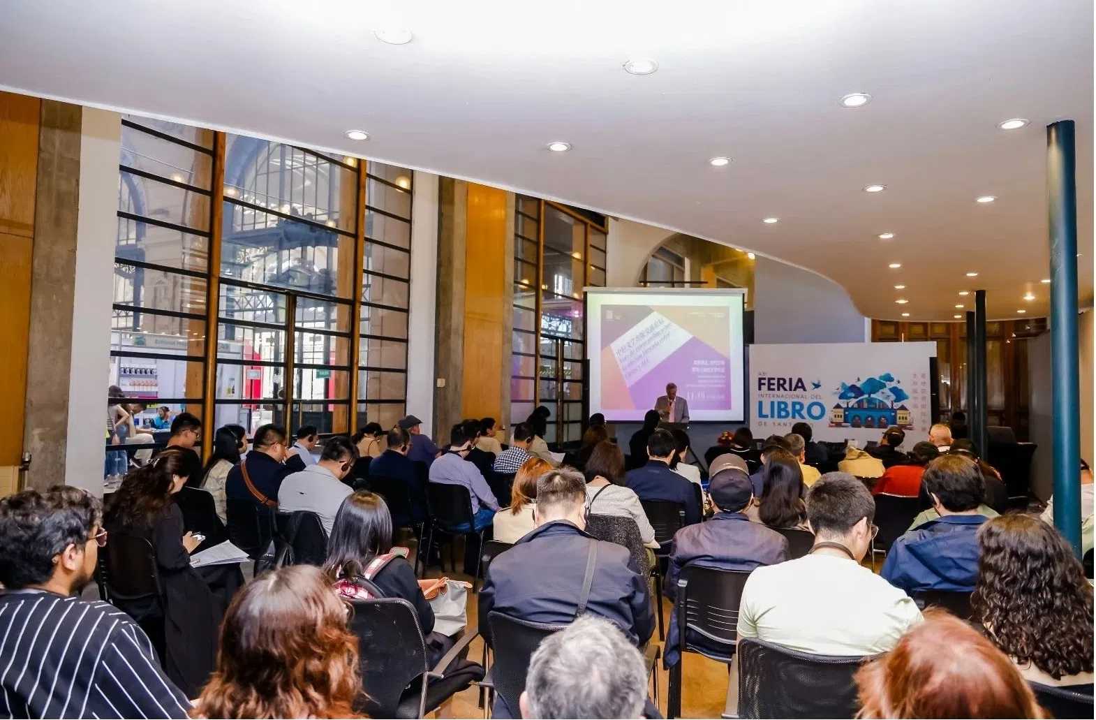 11月10日,由中国图书进出口(集团)有限公司与智利文学协会共同主办、智利文学读者俱乐部协办的“中拉文学出版交流论坛”在马波乔艺术文化中心书展现场举行,汇聚了来自阿根廷、秘鲁、智利等国家的中拉两地近百位作家、学者和出版界人士,共同探讨文学与出版领域的交流与合作。论坛由北京语言大学拉丁美洲研究中心主任、智利中国文学读者俱乐部策划人孙新堂主持。