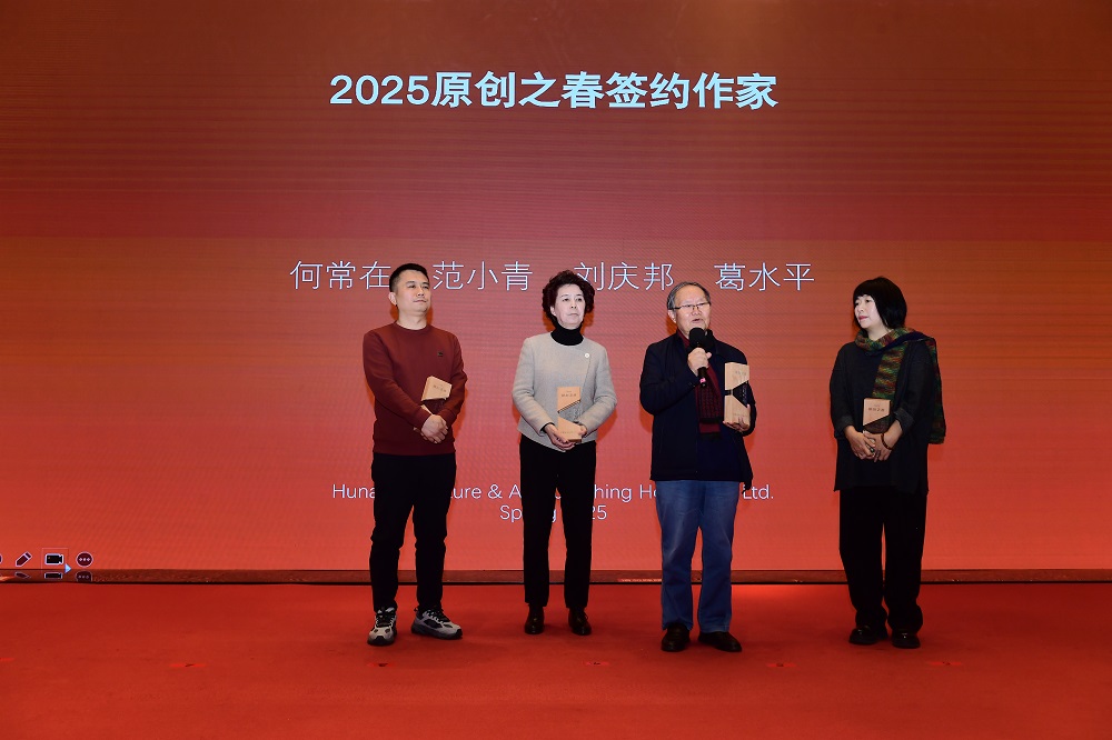 湖南文艺出版社还介绍了未来的出版计划,以“2025原创之春”的名义与刘庆邦、范小青、葛水平、何常在、次仁罗布、梁鸿鹰、关仁山、老藤等作家签约。