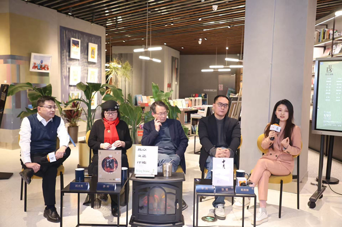 活动现场,左起:刘大先、乔叶、李洱、张楚、戴潍娜