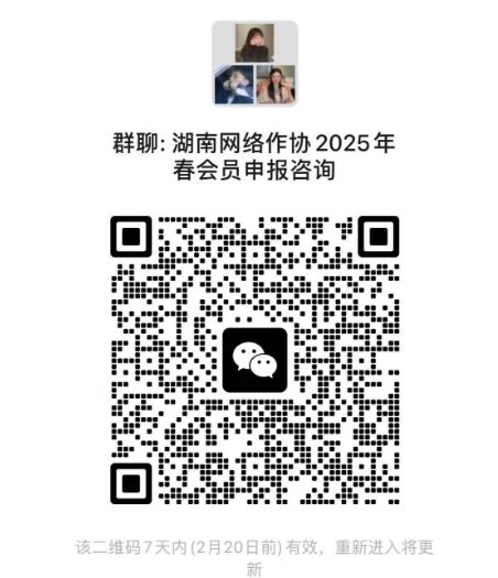 方法:扫描下方二维码,关注“湖南省网络作协”微信公众号,点击下方的“会员申请”填写资料,审核通过后将会通过微信公众号公布。