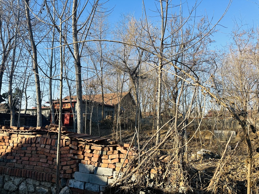 随着车子在村间行驶,魏思孝笔下的辛留村变得有迹可循。这是一座虽不至破败却难言体面的小村庄,主干道上空荡荡,难见行人,只闻得零星犬吠。麦子并未随着寒冬的到来而枯萎,铁轨静静地躺在那里,远处的工厂浓烟四起,于寂静中孕育着一些生机。田垄间时不时掺杂着一些枯树,枯树枝杂乱地纠缠在一起,因无人打理,有些树已摇摇欲坠。据魏思孝说,有几年村民听闻村子要拆迁,可以按树给钱,都纷纷拼命种树,后来政策改成按亩给钱,大家没了兴致,也就随便它们长了。