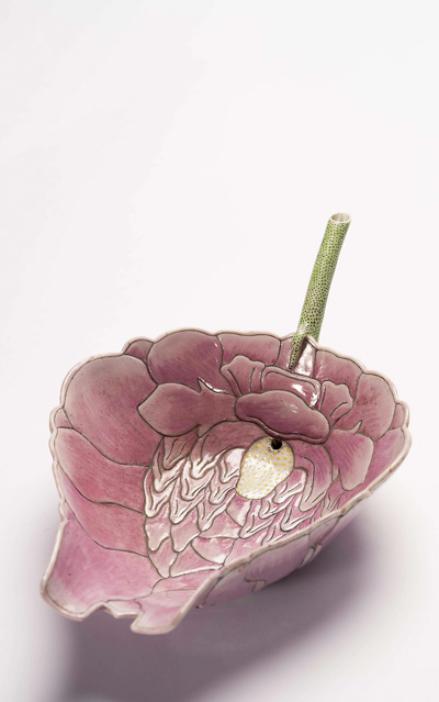 南通博物苑藏清光绪粉彩“秋操纪念”荷花形吸杯。