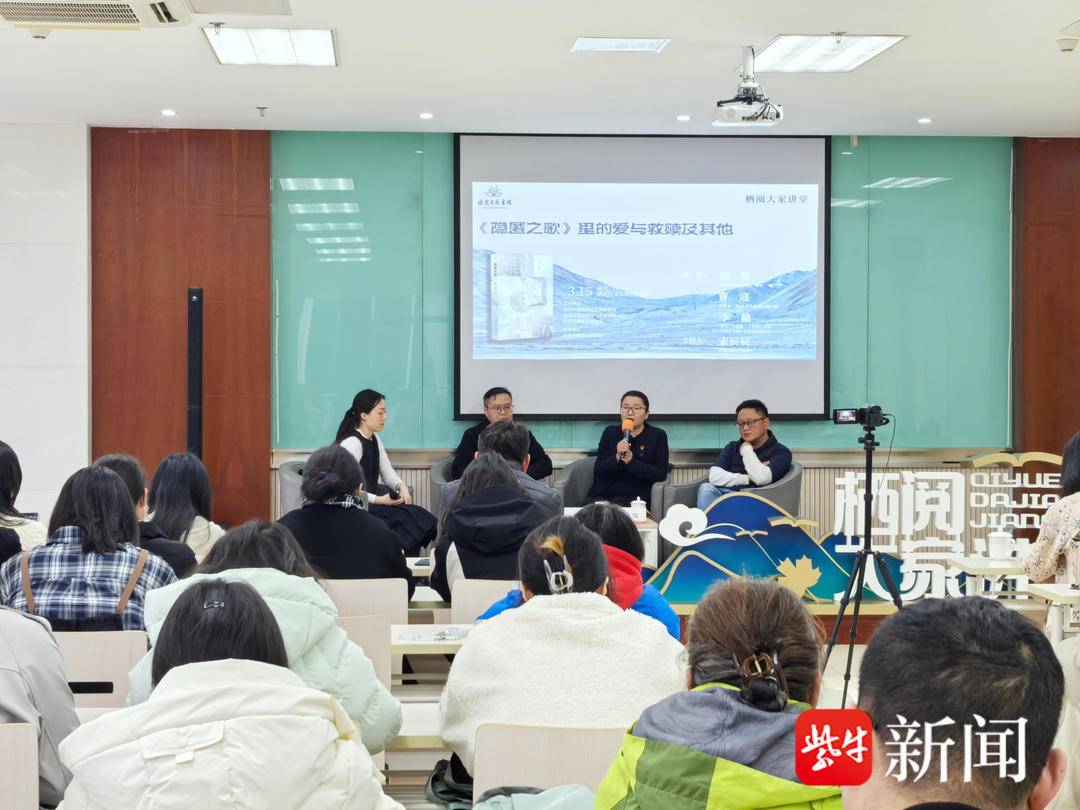 3月15日,诗人、小说家、《青春》主编、江苏省作协小说委员会副主任李樯,小说家、南京市作家协会副主席曹寇,作家出版社副总编、编审颜慧,副编审宋辰辰共同走进栖霞区“栖阅大家讲堂”活动,以“《隐匿之歌》里的爱与救赎及其他”为主题,为市民读者带来一场精彩的阅读分享会。