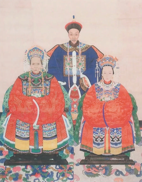 周福清与元配孙氏、继室蒋氏的彩绘神像