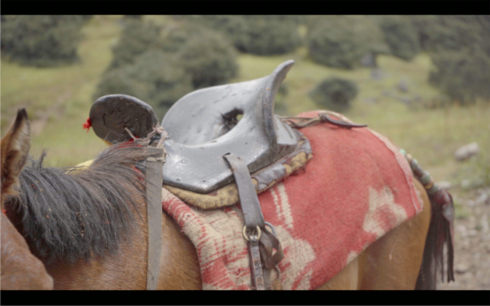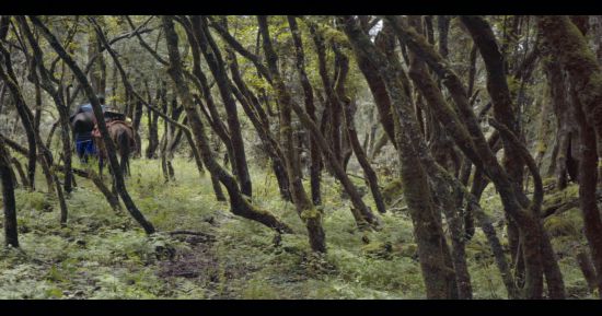 后半夜下了一点小雨,次日,羊槽子变得格外清澈、透亮,此时正是八月,夏天似乎还很漫长。一大早,沙马伍飒跟吉克拉哈就来到村民家中借马,“你们家的马,可以借我们拍一下戏吗?拍完了给你们一点借马的钱”,而与他们交流的村民,是马的主人,她认为她家的马并不合适:“我们家的马还没有驯好,怕是胜任不了”,吉克拉哈赶忙解释:我们不拿来骑,就是拉着它走一下,讲述“一个彝族毕摩阿普(老毕摩)从别人家做完仪式回来,牵着马路过森林”这么一段戏,就拍摄可能一分钟不到的视频,几个镜头就完了。