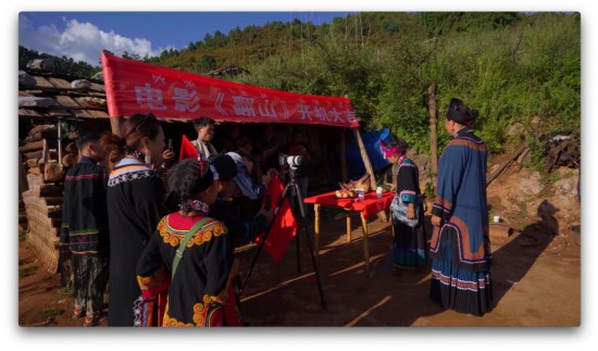 次日,剧组就举行了一个开机仪式。在询问主创这个日子是怎么来的时候,制片人沙马伍飒说,电影制作过程的重要环节,比如开机仪式、走红毯、发布等重要的日子,都要找德高望重的毕摩去算日子,从其那里算出一个良辰吉日,从而确定一个特定的日子进行开机仪式——《翻山》剧组的开机仪式时间定在“猪日”(彝族十月太阳历)下午的六点六分。