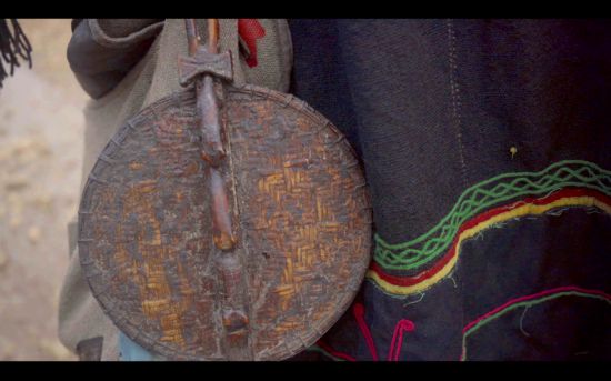 因为耳饰,当天晚上在火塘边磋商出的结果是,第二天要重拍山上的两个镜头。比起前一天,吉克拉哈这一次不敢大意,亲自上山来看这场戏,而演员也把查尔瓦、斗笠、经书、铜扇、野猪牙这些道具穿戴在身上,“通过这些真实的道具,给观众一种神秘感”。