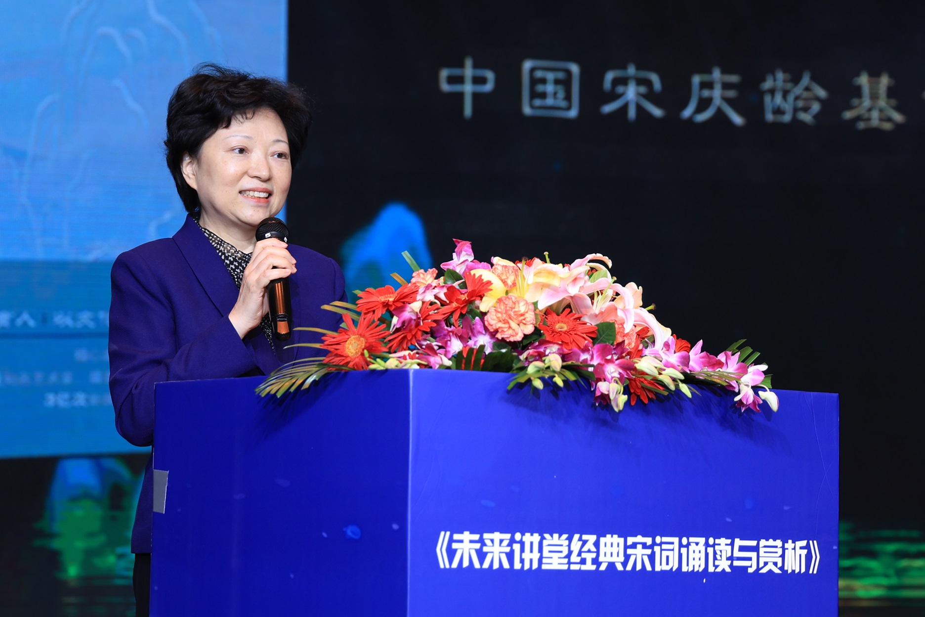沈蓓莉在致辞中指出,宋词作为中国文学的璀璨瑰宝,传递出深厚的文化底蕴与真挚的家国情怀。《未来讲堂——经典宋词诵读与赏析》精选宋词名篇,以当代视角解读经典,用青春语言对话古人,为青少年更好了解宋词搭建了一座桥梁。她表示,中国宋庆龄基金会致力于服务青少年全面发展。在“全民阅读活动周”之际举办本次活动,是践行落实习近平文化思想的重要举措,也是响应全民阅读倡议的具体实践,希望以此推动青少年养成阅读习惯,增强阅读能力,提升阅读质量,为形成全社会爱读书、读好书、善读书的浓厚氛围贡献一份力量。
