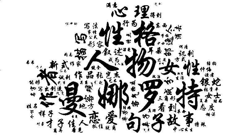 如果以同样的步骤对发文量排名第二的汪倜然批评文献的词云进行分析(排名第一的钱杏邨与排名第三的茅盾下文另述),如图2所示。由之可知,“人物”一词以显眼的位置呈现在词云正中心,而《曼娜》中的主人公“曼娜”与“罗特”也出现在词云中,表明汪倜然的批评重心显然在人物身上。又如他在评论《青春》时指出,“张资平所用为中心人物的女性都是一种最易博取同情的女性”(3),并认为这样的小说易得到读者的喜爱,但有损于作品的艺术性。作为发轫期中发文量排名前三的批评家之一,汪倜然的批评实践凸显作品的人物评析是此时段批评的重点之一。除此之外,“叙述”是1923、1927、1929年的高频词,凸显了作品的叙述方式成为批评者关注的重要视角。如朱自清对比剖析了《老张的哲学》与《赵子曰》的叙述方式(4);汪倜然认为《青春》未以一个人物作一个根本的叙述点,以致结构混乱(5);古月指出《棘心》随笔性的叙述与小说并不合宜(6),等。此外,1929年的高频词有“文字”“题材”“烘托”,表明这一年的批评焦点仍在作品本身与创作手法上。像毛一波点明《南风的梦》“在材料的安排上以及文字的描写,均不能说是一部小说的”(7);侍桁指出张资平“操纵文字的能力……是不成熟的。他的最大底缺点便是不简洁”(8);茅盾指出《倪焕之》第二十三章使用“倪焕之个人的感念来烘托出当时的情形”,在艺术上是一个缺点(9),等。总之,批评者不仅关注小说的创作手法,也聚焦小说的语言风格,并对小说的人物形象进行细致地分析,呈现出发轫期的长篇小说批评注重文学的本体批评,也表明,这一时期的各种文学论争刚刚开始,不同观念、不同思想的批评家对于批评视野的构建,更多地聚焦在文本内在审美性的语汇上,对于文本的外在因素尚未认真考虑,更未以之为尺度。