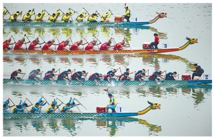 龙船进入最后冲刺,夺取红标——红标多用红布,即彩头。龙船靠近江边的一刹那,擂鼓的更是把鼓击成雨点,然后提锣紧筛(急打),站头的借了龙船的惯性,奋力一跃,跳上河岸,飞奔而去,夺取红标。谁取得红标,便是第一,便是胜利。