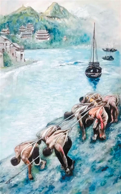 头纤要侧着身子看水路,吼号子,伙计们跟着喊“嗨佐”,这号子既是号令,也是拼尽全力之时的迸发。在“嗨佐”声中,船便摇晃着爬上一道道险滩,经秭归、巴东,到巫山十二峰,再到奉节、涪陵、重庆。