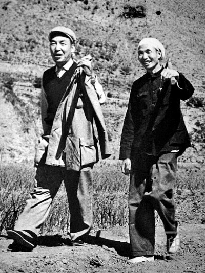 人民的火热生活是赵树理创作的丰富矿藏,也是他的创作实践能够在当下得以运用的重要原因。图为赵树理(左)与群众一起劳动。资料图片