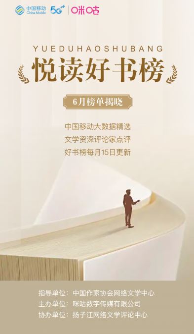 6月15日,“悦读好书榜”第六期榜单正式发布。本次活动由中国作家协会网络文学中心指导,咪咕数字传媒有限公司主办,扬子江网络文学评论中心协办,旨在持续挖掘兼具文化价值与市场潜力的优质网络文学作品。