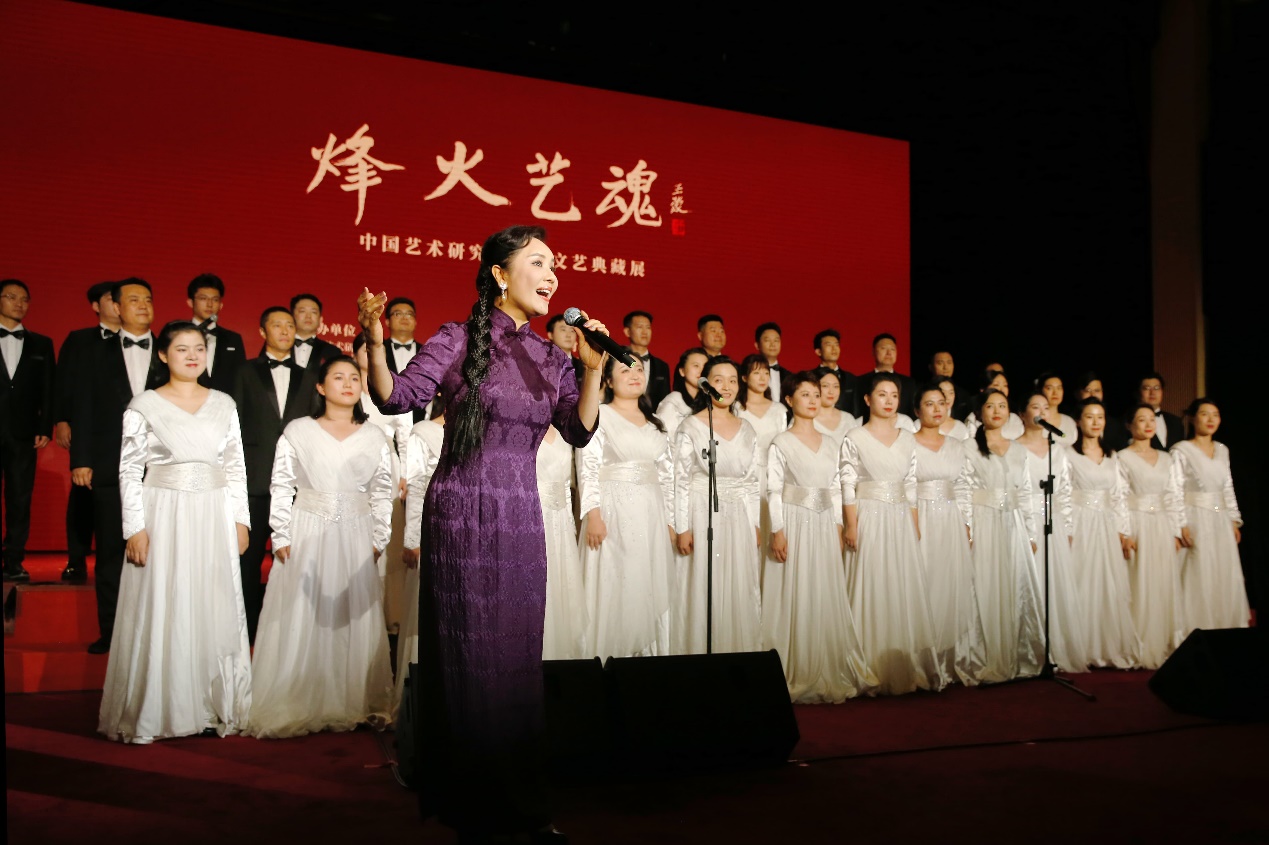 开幕式上,由中国艺术研究院职工、研究生院教师和硕博士生,以及中央歌剧院合唱团成员共同组成的国艺合唱团,以饱满的热情,深情演绎了《八路军进行曲》《南泥湾》《保卫黄河》三首经典抗战歌曲,以情绪激昂、气势磅礴的歌声,纪念抗日战争的伟大胜利,赞颂伟大的抗战精神。
