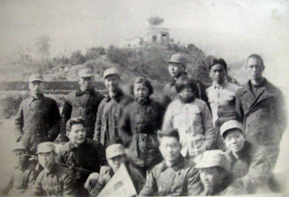 上图是浙西抗战农村巡回演出队成员,蹲者左二是上海美专毕业生、中共地下党洪宝鋆