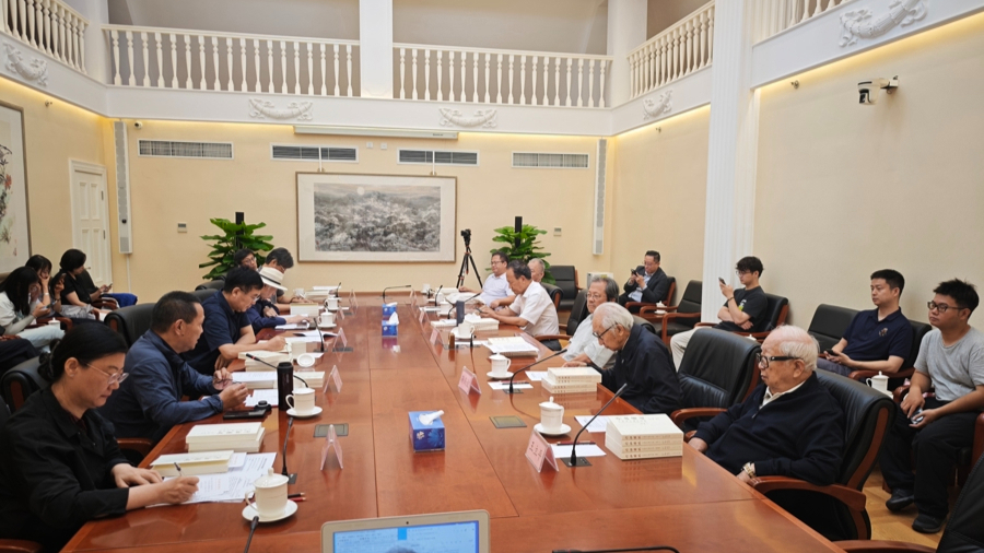 座谈会由国务院参事室中央文史研究馆研究中心主办,中央文史研究馆副馆长冯远出席会议并致辞,中央文史研究馆资深馆员靳尚谊、王立平,馆员梁晓声、孙晓云,特约研究员王镛,中华诗词学会会长周文彰,中国书法家协会副主席叶培贵等众多专家学者齐聚一堂,围绕习近平文化思想中关于文艺创作与革命文化传承研究,抗战书画、诗词等中华传统艺术作品美学研究,以及抗战文艺作品艺术精神与当代文艺创作等方面,展开了深入探讨。