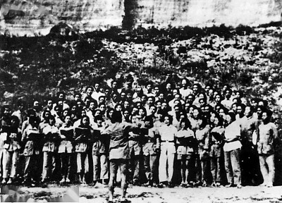 接下来,奇怪的一幕发生了:自讨没趣的保安队的士兵不但没有撤走,反而也和在场的青年们、和当地的老百姓一起,跟着冼星海一句一句地高声唱了起来。不少人边唱边流泪,最后又情不自禁地高呼起了誓死抗战到底的口号……