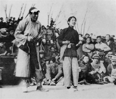 图为街头剧《放下你的鞭子》(1937年)剧照。