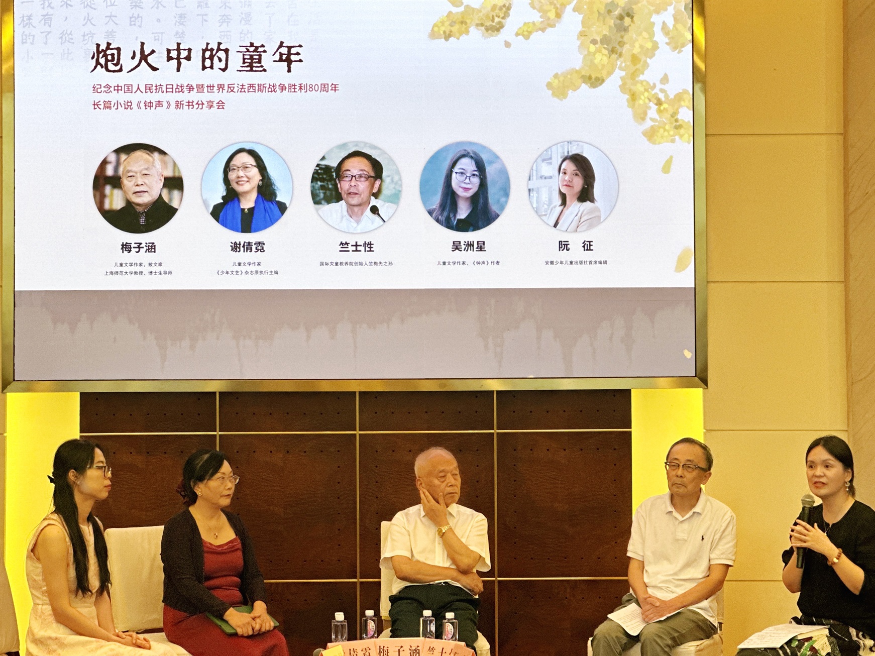 8月15日,为纪念中国人民抗日战争暨世界反法西斯战争胜利80周年,由安徽少年儿童出版社与宁波市文学艺术界联合会联合主办的长篇小说《钟声》新书分享会,在上海书展期间举行。