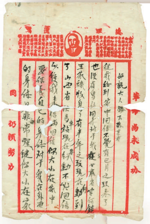 刘中新大概在上世纪二十年代末期参加红军,经长征到达甘肃、陕北,后在八路军115师政治部和343旅工作。据初步考证,此4封信分别写于1937年9月7日和1938年6月至9月间。其中的第一封家书写于山西侯马,当时红军刚刚改编为八路军。1937年9月2日,115师由陕西三原出发进入山西境内,在侯马稍作停留,即北上晋东北抗日前线,9月25日发起了平型关战役。刘中新在这封家书中说:“从我接到家中回信,不觉已有月之久来了,也没有写信回来。对于我在甘肃省宫何镇王家禄收(休)息了有半年之久,现在行动到了山西省侯马车站。现在要行动,不必回信,以后我来信再回信。你大小在家中要保养自己的身体,对于我在外面的身体是非常强健,你大小在家不必挂念……现在是全国动员抗战的时非(候),我在外都是为了抗日救国,不能在家来孝顺母亲大人,以后回家再来孝顺母亲大人。现在我在国民革命军第八路军一百一十五师政治部工作……”
