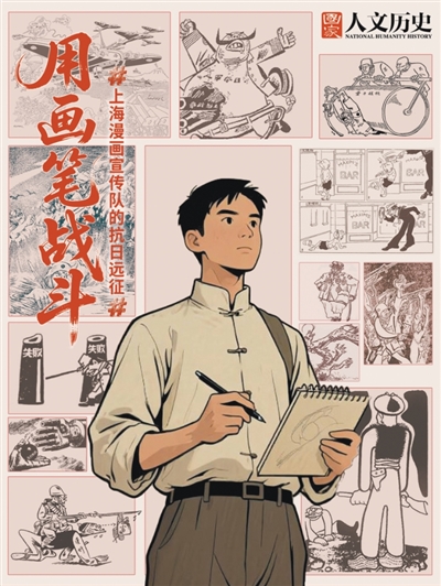 抗战时期,中国漫画中断了相对平稳的发展状态,迅速投入到抗日救亡宣传中。《国家人文历史》专刊《当画笔成为刺刀:抗日硝烟里的“漫画战争”》一文,从《救亡漫画》《抗战漫画》《抗敌画报》等抗战漫画刊物的相继诞生,到上海漫画家自发成立漫画界救亡协会并组建漫画宣传队,全面展现了漫画为中国人民夺取抗战胜利作出的贡献,也让漫画前辈们“为国家民族利益敢于担当、敢于战斗”的不朽丰碑愈发清晰。