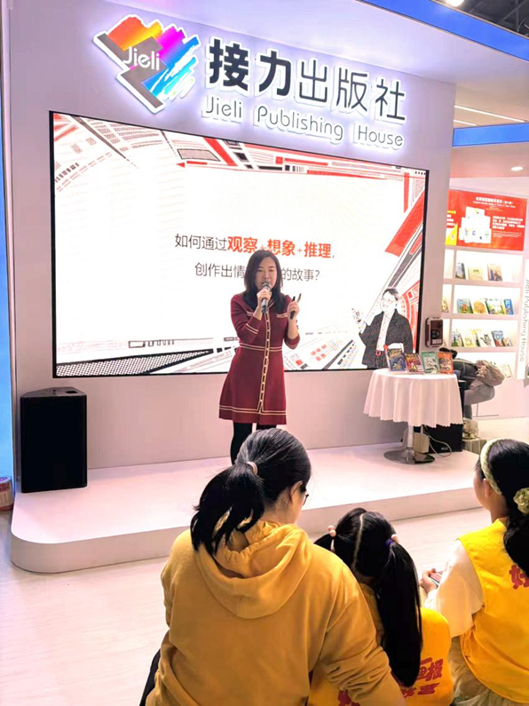 葛竞总结道:“注意观察小细节,你就能成为生活中的大侦探,为创作积累丰富素材。”之后的“创意写作练一练”则着重激发孩子的想象力,打开头脑中另一片神秘的宇宙。葛竞认为,广泛的阅读是滋养想象力的最佳土壤,而写作则是将奇思妙想落于笔端的勇敢尝试。现场小读者积极参与,在互动中感受到了将灵感转化为文字的乐趣。