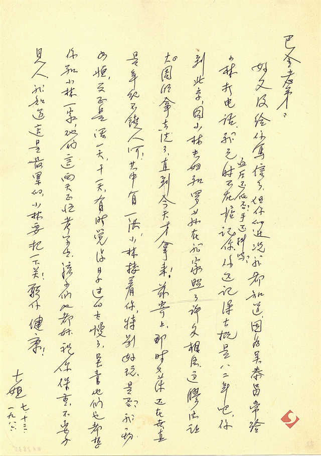 1986年冰心致巴金的一封信 中国现代文学馆 藏