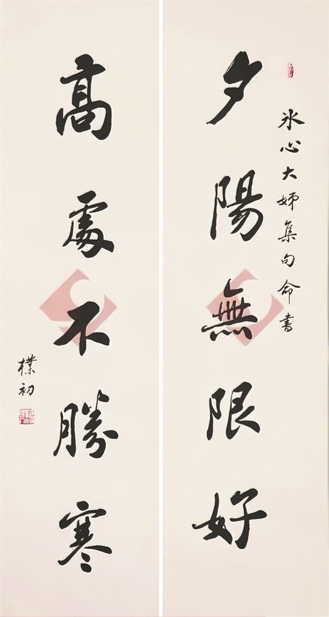 赵朴初书法短对联“夕阳无限好,高处不胜寒”,冰心捐赠 中国现代文学馆 藏